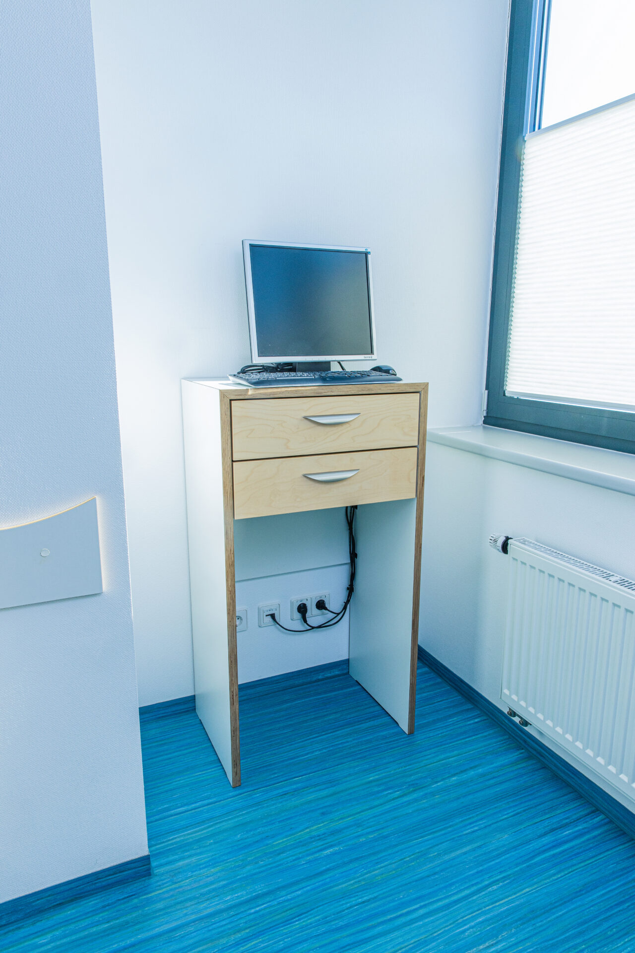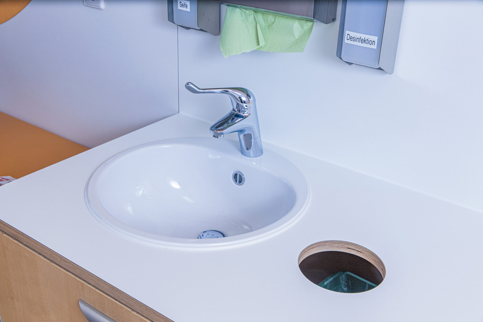 Wir achten auf den passgenauen Einbau und integrieren Waschbecken, Stauraum und Steharbeitsplatz. So gibt es keine Schmutzecken und die Reinigung der Praxisräume kann ökonomisch erfolgen.